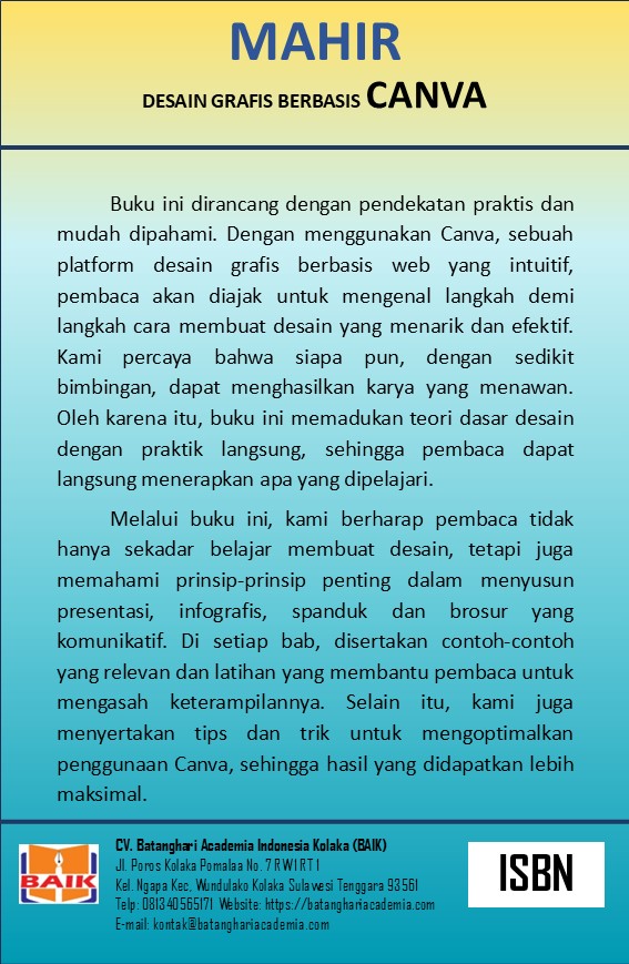 dengan baik. Buku “Mahir Desain Grafis berbasis Canva” hadir untuk